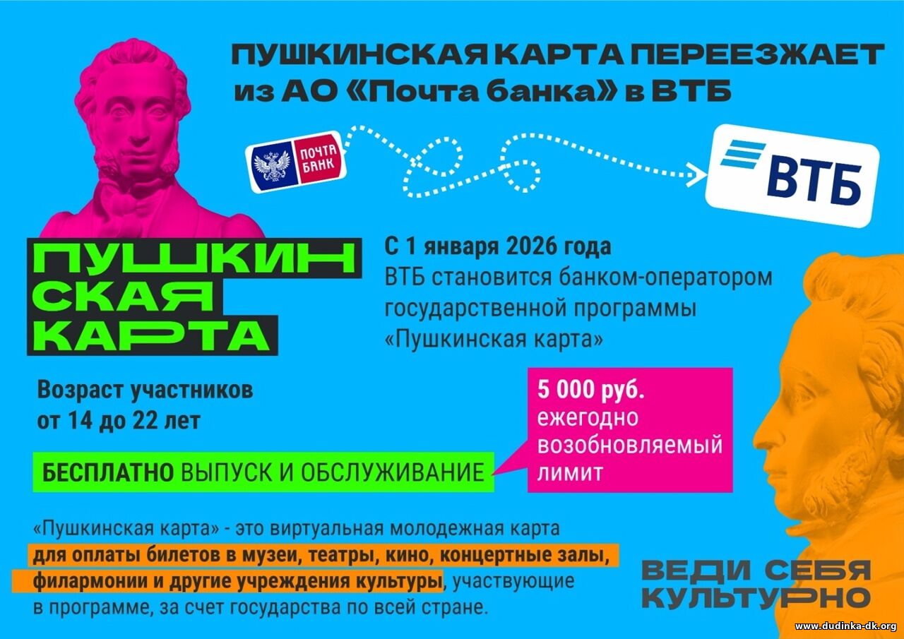 3. С 15:00 1 января 2026 года ВТБ начнет выпускать и обслуживать Пушкинские карты.